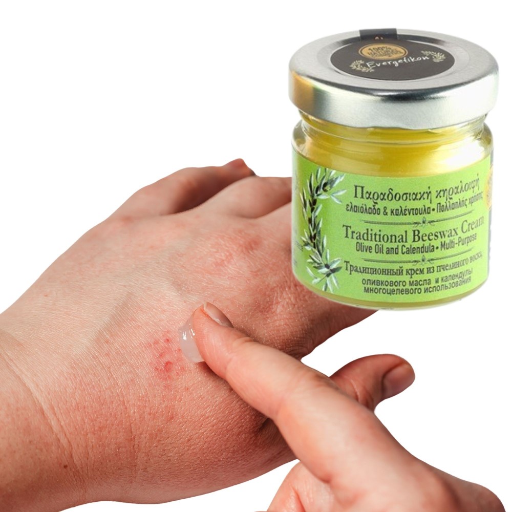 Tradycyjna maść z Krety z oliwą z oliwek, woskiem pszczelim i olejem z nagietka. Regeneruje, nawilża i koi skórę suchą, wrażliwą lub podrażnioną. Idealna do twarzy, ciała i miejsc wymagających szczególnej ochrony.