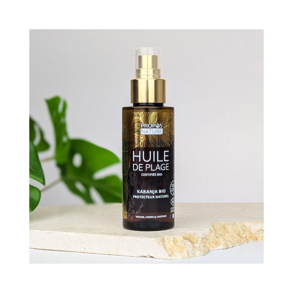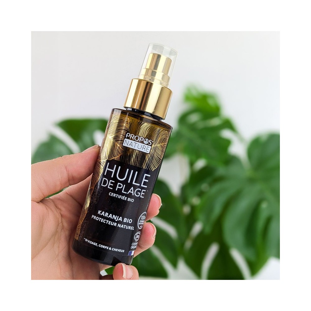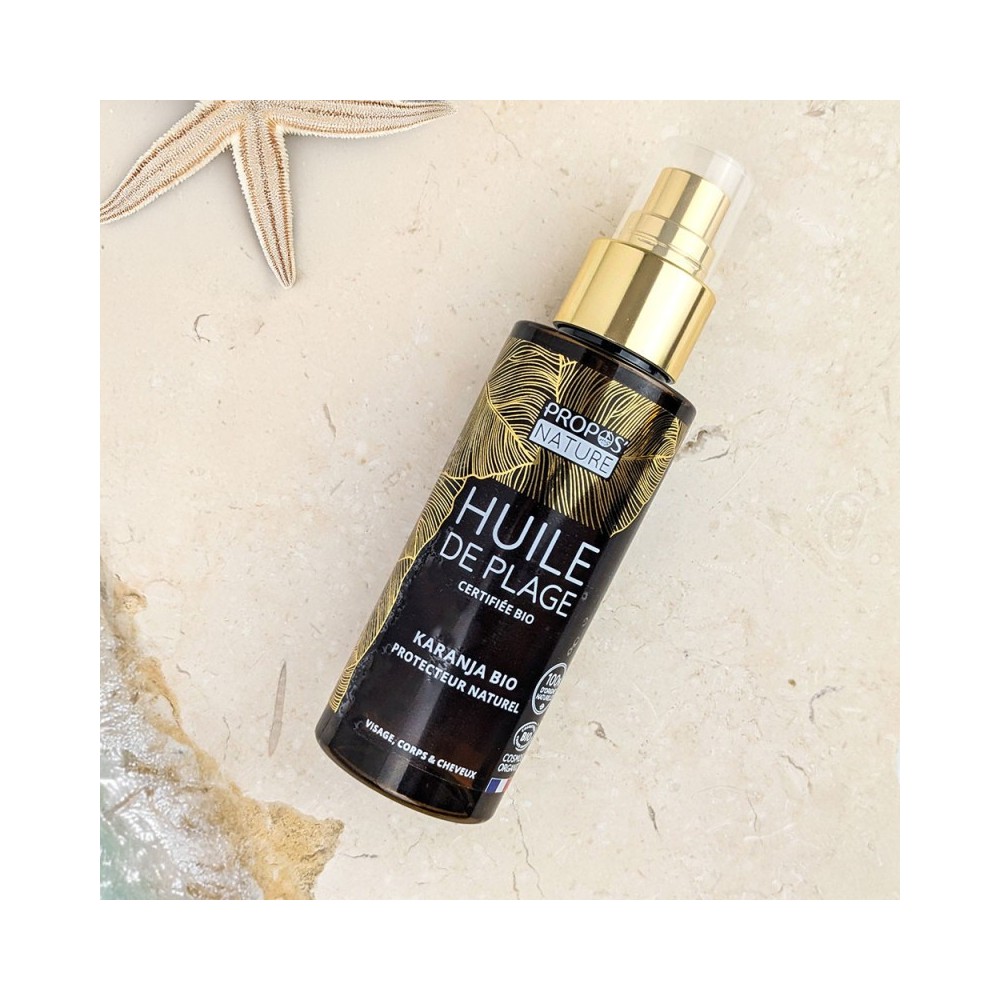 Bio olejek na plażę marki Propos'Nature to innowacyjne połączenie czystej natury z efektywną pielęgnacją słoneczną. Produkt opiera się na unikalnych właściwościach oleju karanja, który naturalnie absorbuje promieniowanie UV, stanowiąc roślinną alternatywę dla syntetycznych filtrów.