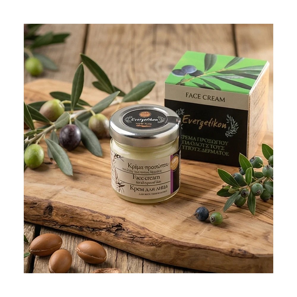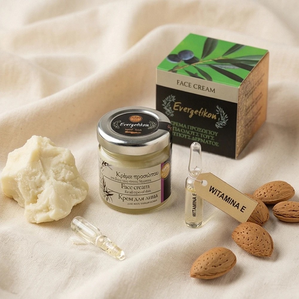 Naturalny krem do twarzy do każdego typu skóry. Silnie nawilża, regeneruje i tonizuje, wspiera elastyczność i jędrność. Bogaty w roślinne oleje: oliwa z oliwek, arganowy, ze słodkich migdałów i jojoba – odżywia skórę i wzmacnia barierę hydrolipidową.