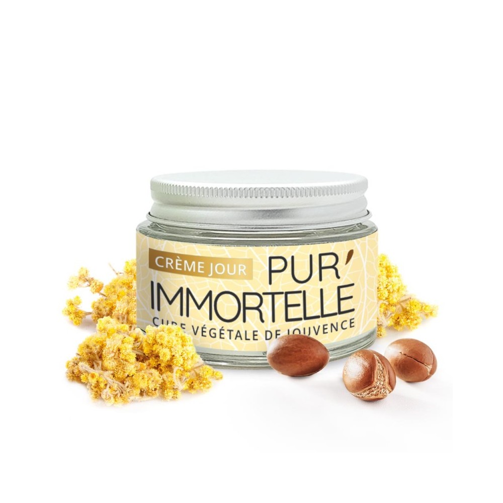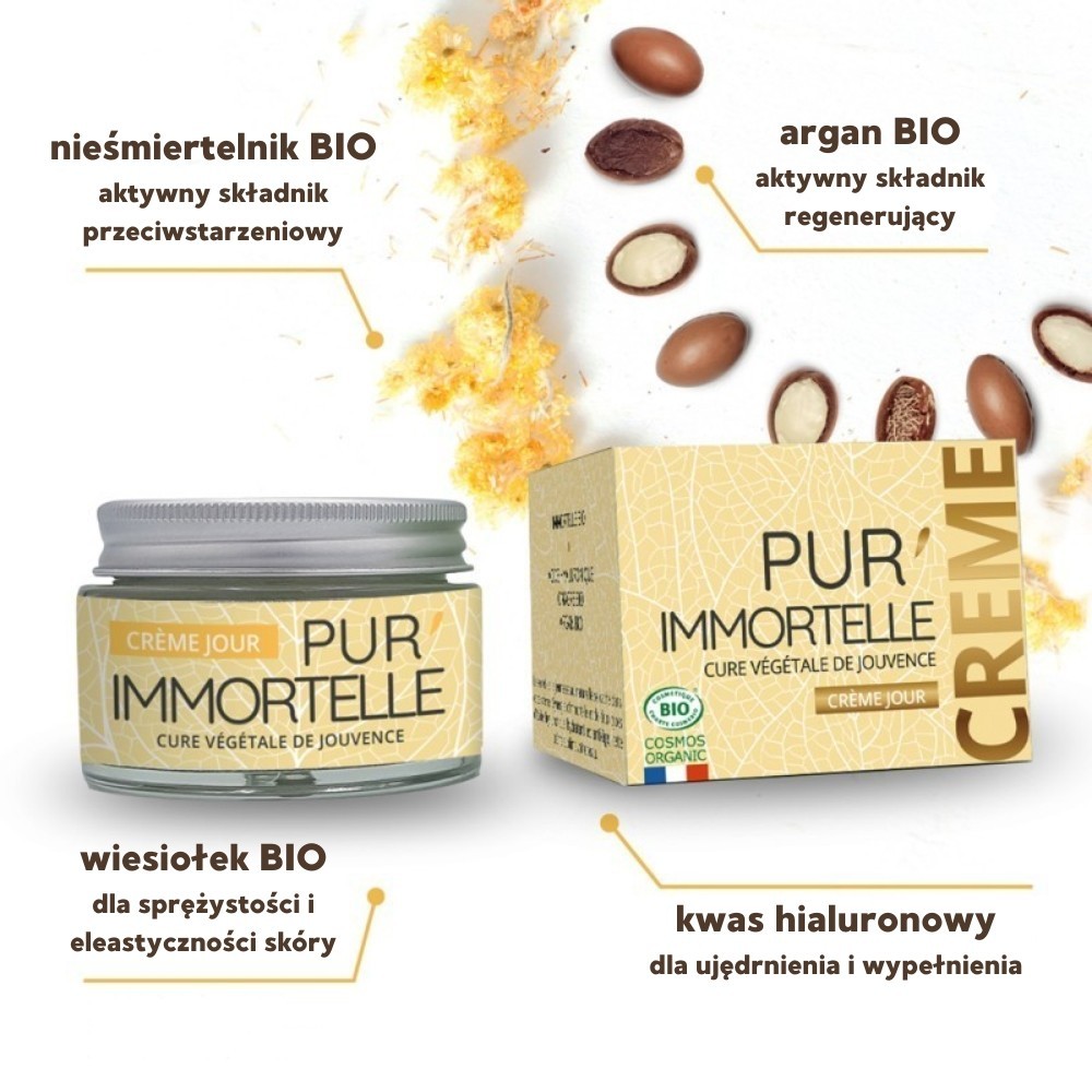 Organiczny krem na dzień Pur’Immortelle firmy Propos'Nature to prawdziwa kuracja odmładzająca dla Twojej skóry. Odkryj przeciwzmarszczkowy krem z nieśmiertelnikiem, który łączy jego potężne właściwości regenerujące z intensywnym nawilżeniem płynącym z dwóch rodzajów kwasu hialuronowego.