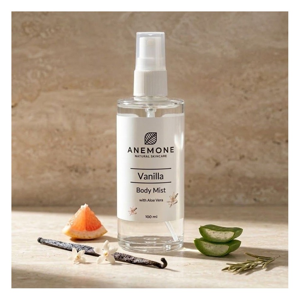 Naturalna mgiełka do ciała o zapachu wanilii z aloesem, wodą z grejpfruta i rozmarynem odświeża, tonizuje i nawilża skórę. Nadaje zdrowy blask, chroni przed wysuszeniem i sprawdza się w codziennej pielęgnacji wszystkich typów skóry.