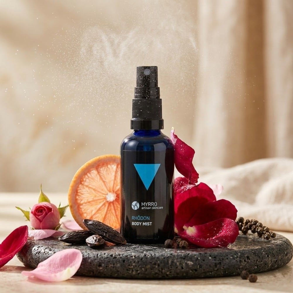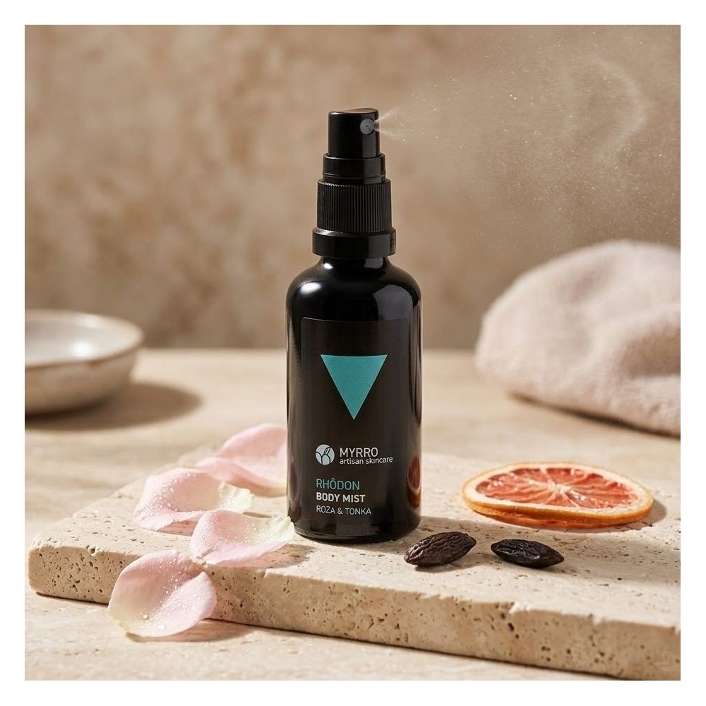 Mgiełka do ciała Rhôdon marki Myrro Skincare, to mgiełka do ciała i włosów bez zawartości wysuszających alkoholi, która łączy w sobie ponadczasową elegancję i zmysłowość. Dzięki harmonijnej kompozycji naturalnych ekstraktów roślinnych głęboko nawilża naskórek i otula go intrygującym zapachem, nie powodując przesuszenia.