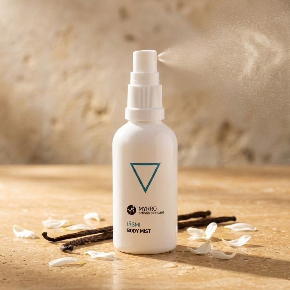Mgiełka do ciała Iâsmi marki Myrro Skincare to mgiełka do włosów i ciała, która otula zmysły aromatem spokojnego, śródziemnomorskiego wieczoru. Dzięki synergii naturalnych ekstraktów roślinnych głęboko nawilża naskórek i pozostawia na nim trwały, elegancki zapach, nie powodując przesuszenia.