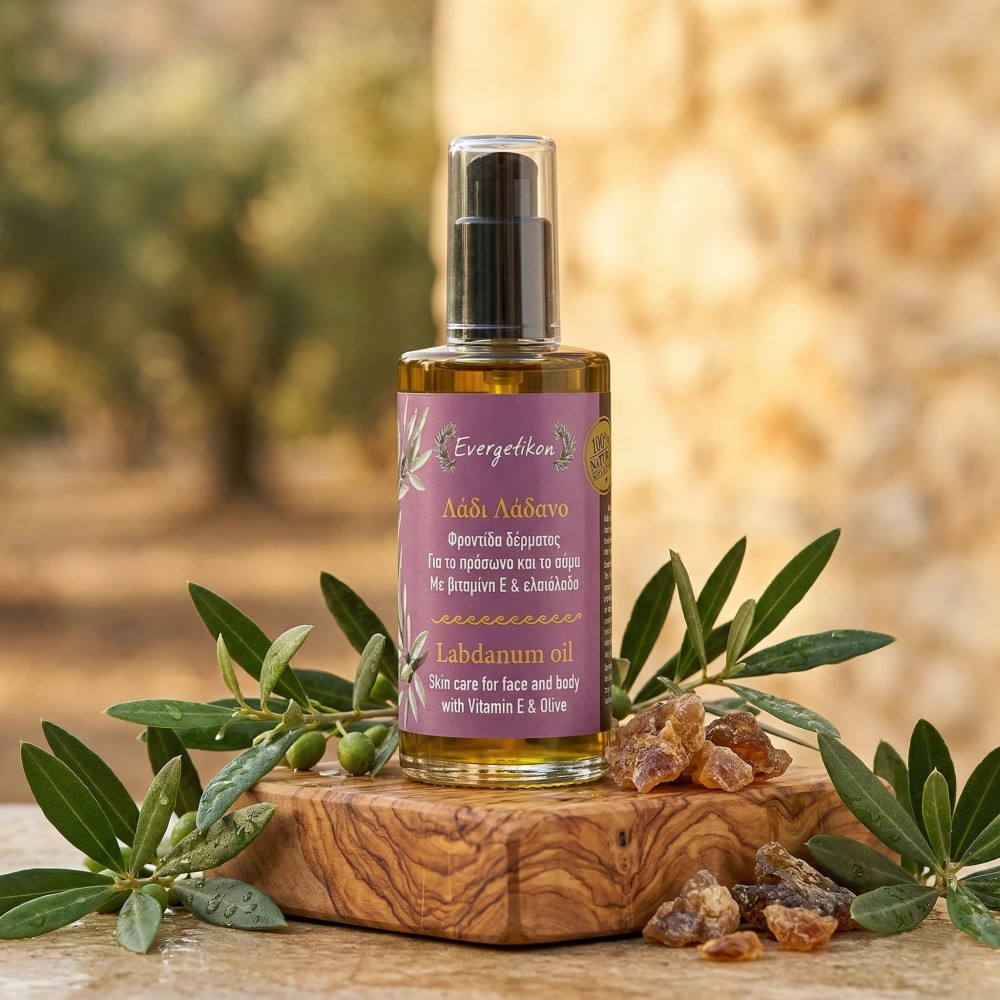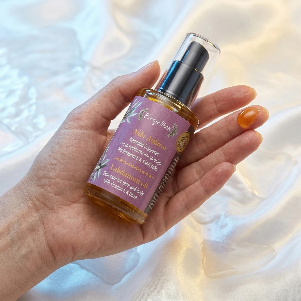 Naturalny olejek z labdanum z witaminą E i oliwą z oliwek regeneruje, nawilża i chroni skórę przed starzeniem. Działa przeciwzmarszczkowo, odżywia i wygładza, wspiera pielęgnację skóry dojrzałej, suchej i wrażliwej, przywracając blask i elastyczność.