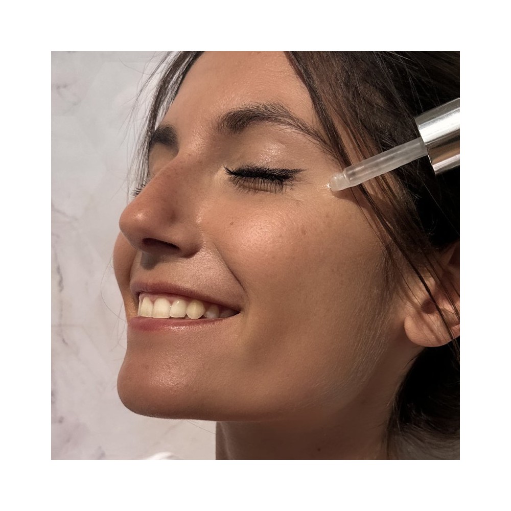 - Precyzyjna aplikacja – Szklana pipeta pozwala na celowane nałożenie serum dokładnie tam, gdzie skóra potrzebuje go najbardziej (zmarszczki, bruzdy).