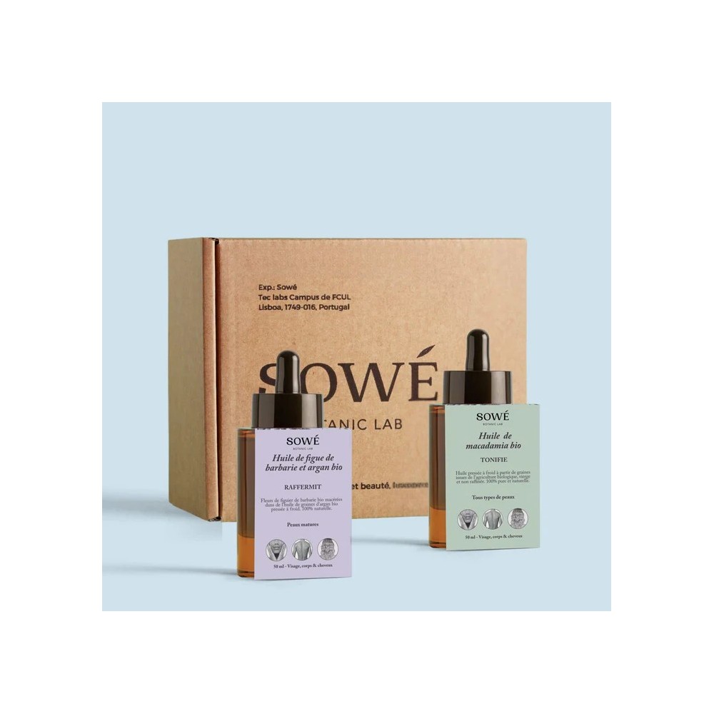 Zestaw do skóry suchej i odwodnionej i mieszanej : olej arganowy z opuncją (50 ml) + czysty olej makadamia (50 ml). Głębokie nawilżenie, regeneracja, wygładzenie i blask. Formuły niekomedogenne, certyfikowane organiczne. Idealne na dzień i noc.
